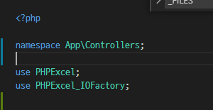 4. PHPExcel을 사용할 컨트롤러에 use와 함께 선언!