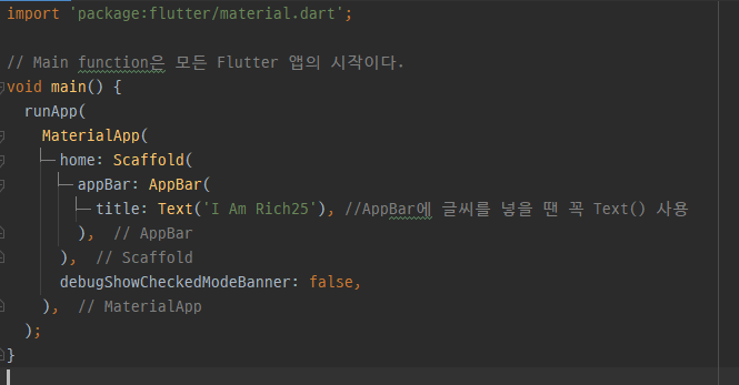 // Main function은 모든 Flutter 앱의 시작이다.
